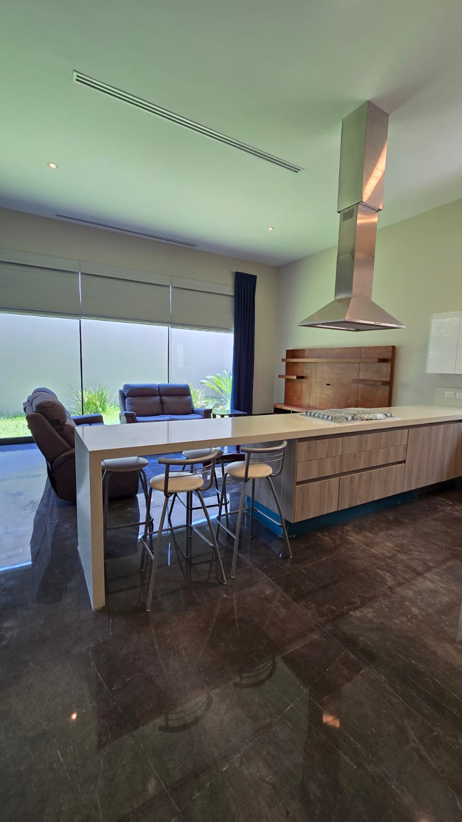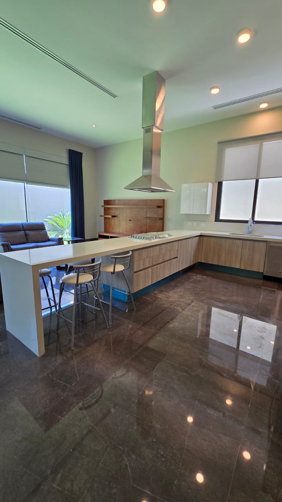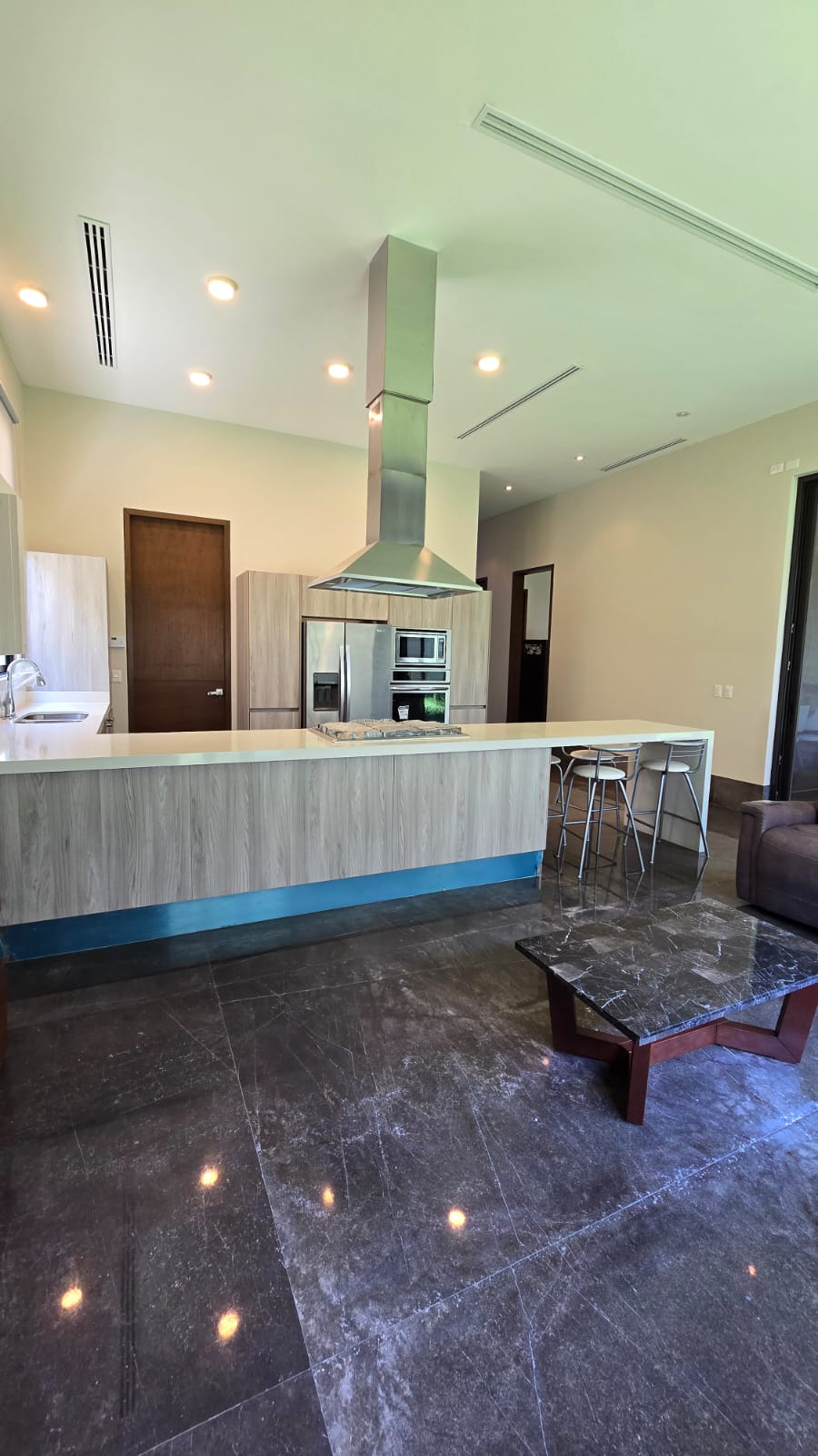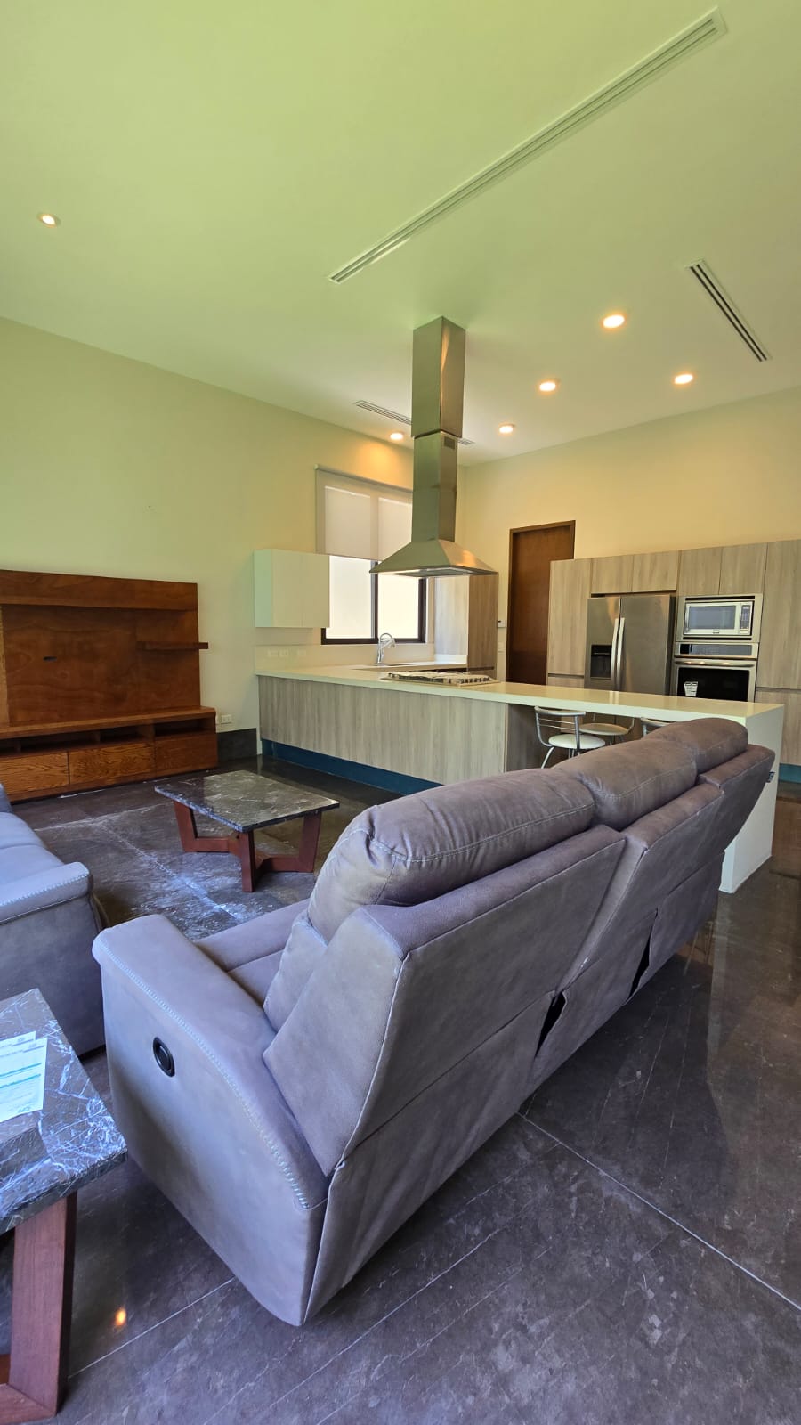 La casa es nueva se vende amueblada, con clima central en toda la casa, piso de marmol, en recamara duela de ingenieria, acabados de gran lujo.